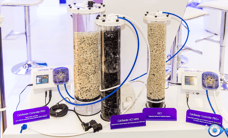 Bien sûr, leur réacteur à calcium, CalcFeeder , avec un système de régulation optique intégré performant. Un système intelligent qui, au lieu de mesurer le pH, mesure le CO2 à travers un capteur optique et ajuste en conséquence le réacteur. De plus, certains modèles sont équipés d’une tour de dégazage pour améliorer l’efficacité.